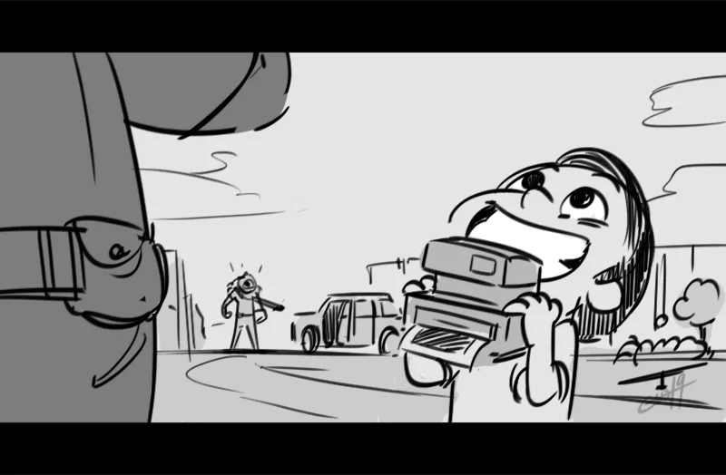 I was tasked with coming up with various ideas incapsulating the character’s personality while also injecting humor for the end credits.